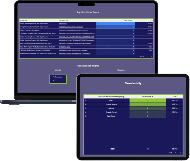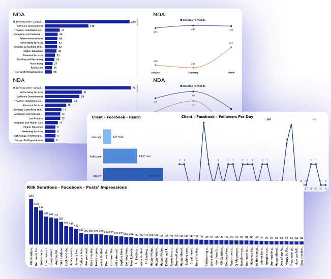 By using Klik Marketing Analytics, Klik Solutions can now track various marketing parameters from multiple sources in one centralized location, allowing for more efficient and comprehensive monitoring. Please see all the details below. These metrics demonstrate Klik Digital’s proficiency and success in delivering superior marketing analytics solutions, making us the ideal partner for optimizing your marketing efforts.
